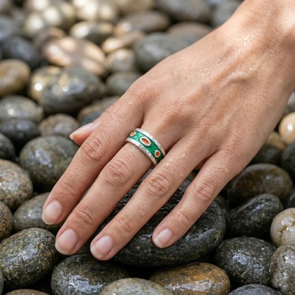 Anello artigianale sassetti. Da principio, fatto il disegno, modelliamo il gioiello con lastre e fili in cera. Una volta terminato il modello passiamo dalla cera al metallo utilizzando la tecnica della micro fusione a cera persa. Successivamente rifiniamo manualmente il gioiello, che esce grezzo dalla fusione, e poi lo lucidiamo attraverso macchinari dedicati. Solo in conclusione lo smaltiamo con resine epossidiche colorate cotte in forno a 60 °C. Per ordinare un anello sul sito si deve disporre della misura precisa del dito che consigliamo di prendere con una apposita anelliera.